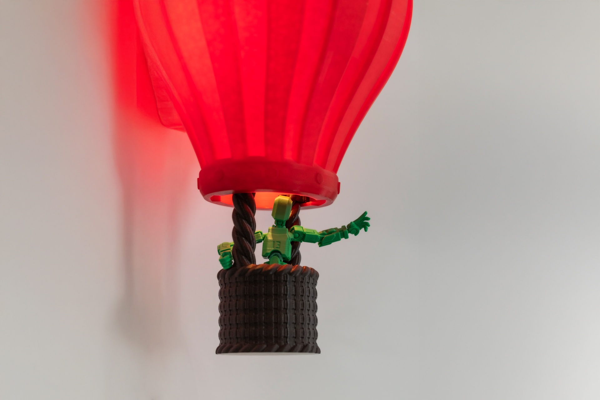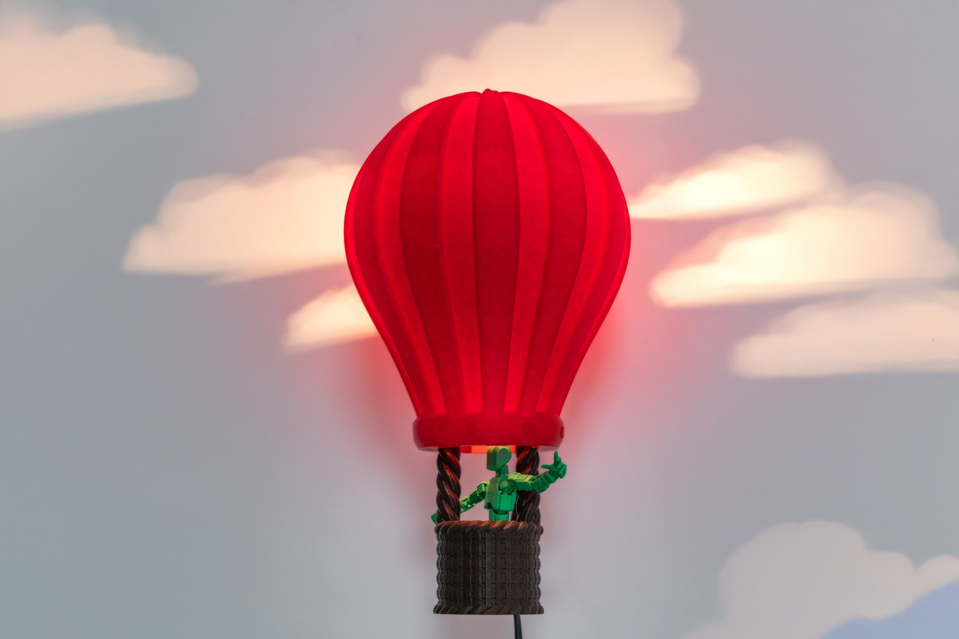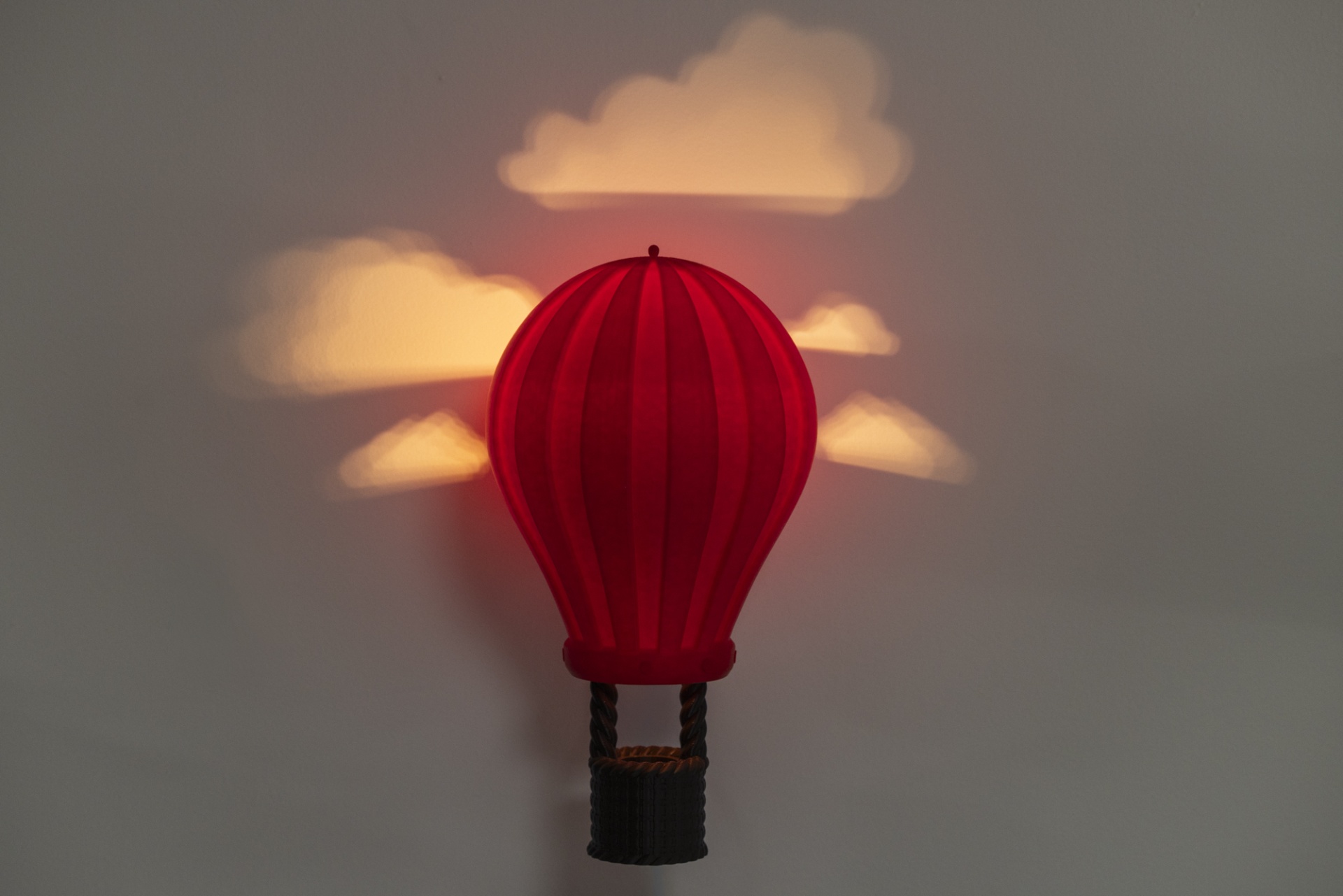 Deixa a imaginação voar com este encantador candeeiro de parede em forma de balão de ar quente. Ao acender, projeta suaves nuvens de luz na parede, criando um ambiente mágico e acolhedor, ideal para quartos infantis ou espaços criativos. O seu design realista e colorido transforma qualquer divisão num cenário de sonho.