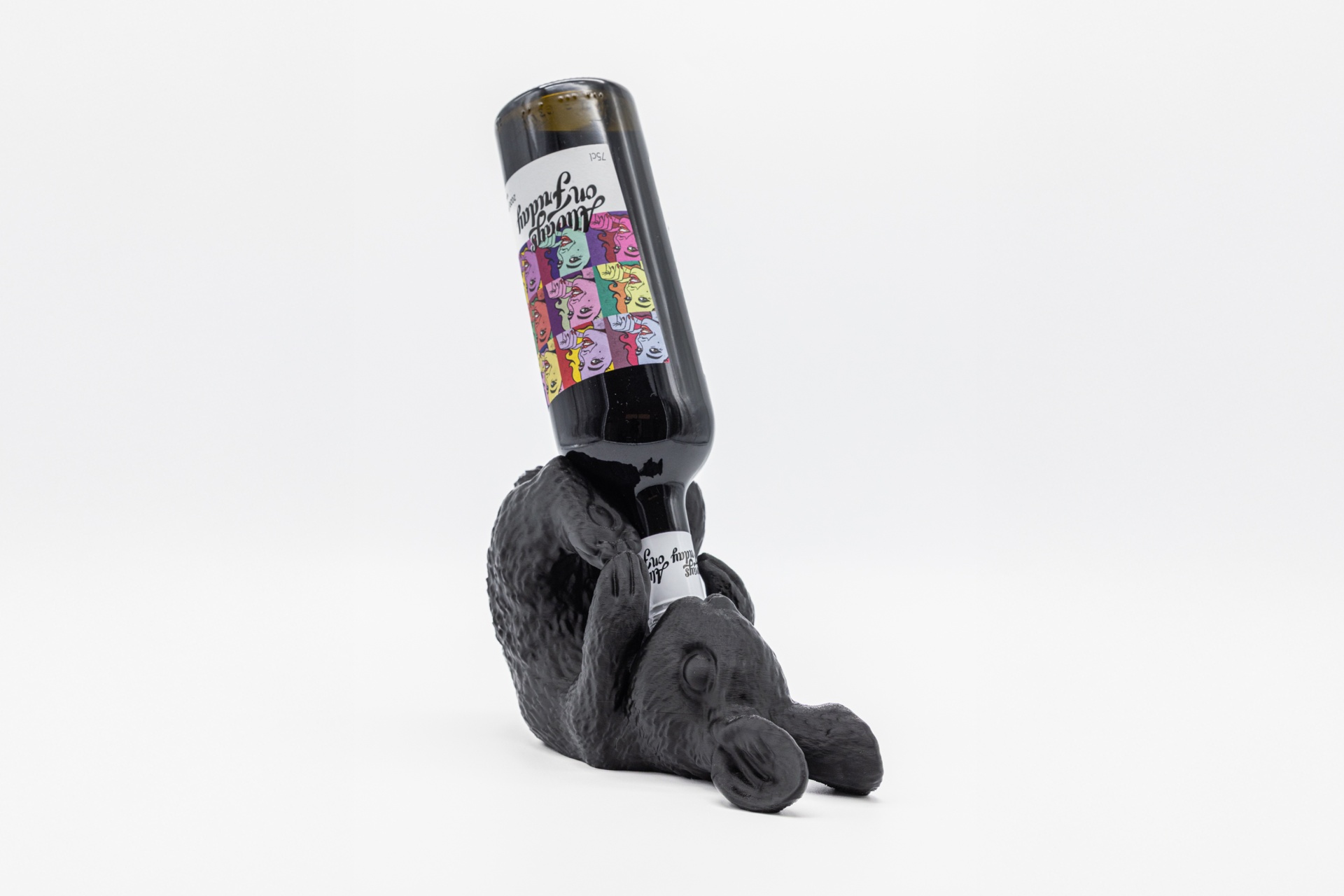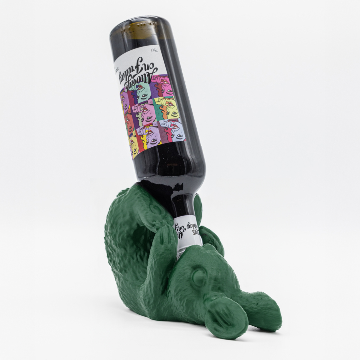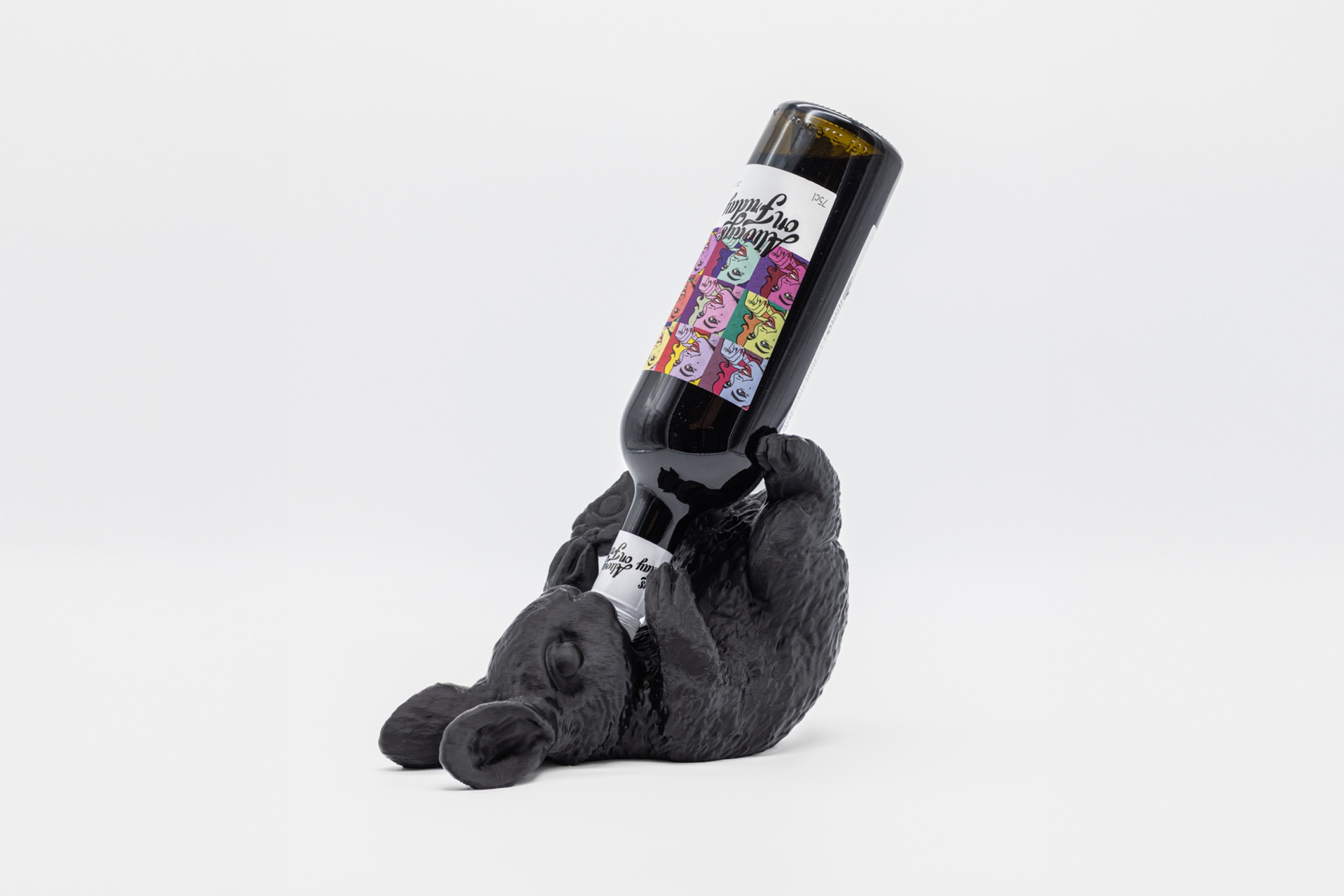 Um adorável coelho que suporta garrafas de vinho como se fosse o seu tesouro mais precioso. Deitado de costas com as patas erguidas, combina charme e funcionalidade numa peça que cativa à primeira vista. Ideal para dar um toque lúdico e elegante à tua decoração.